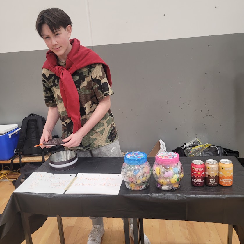 Never mind the hoodie over the shoulders. There were girls moving over to visit his booth. Some of these kids idea’s were brilliant. Even one young guy selling burgers, cooking them on a George Foreman grill. Jackson was selling pop and Mochi toys. Fun morning for us.
