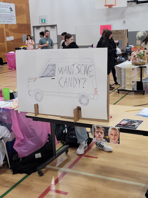 I love this kids play on words. A white van with “Want some candy ” Hilarious. !
