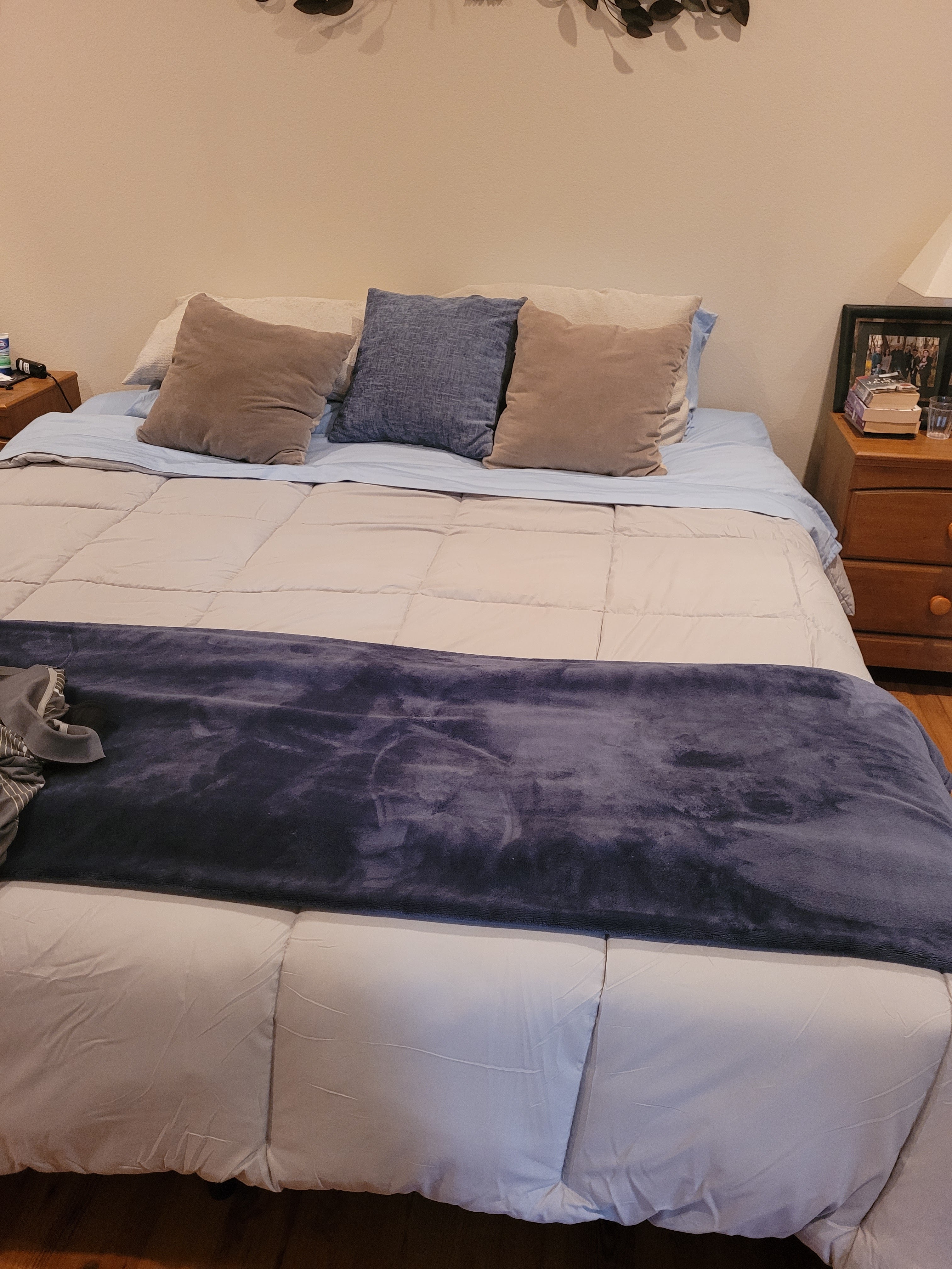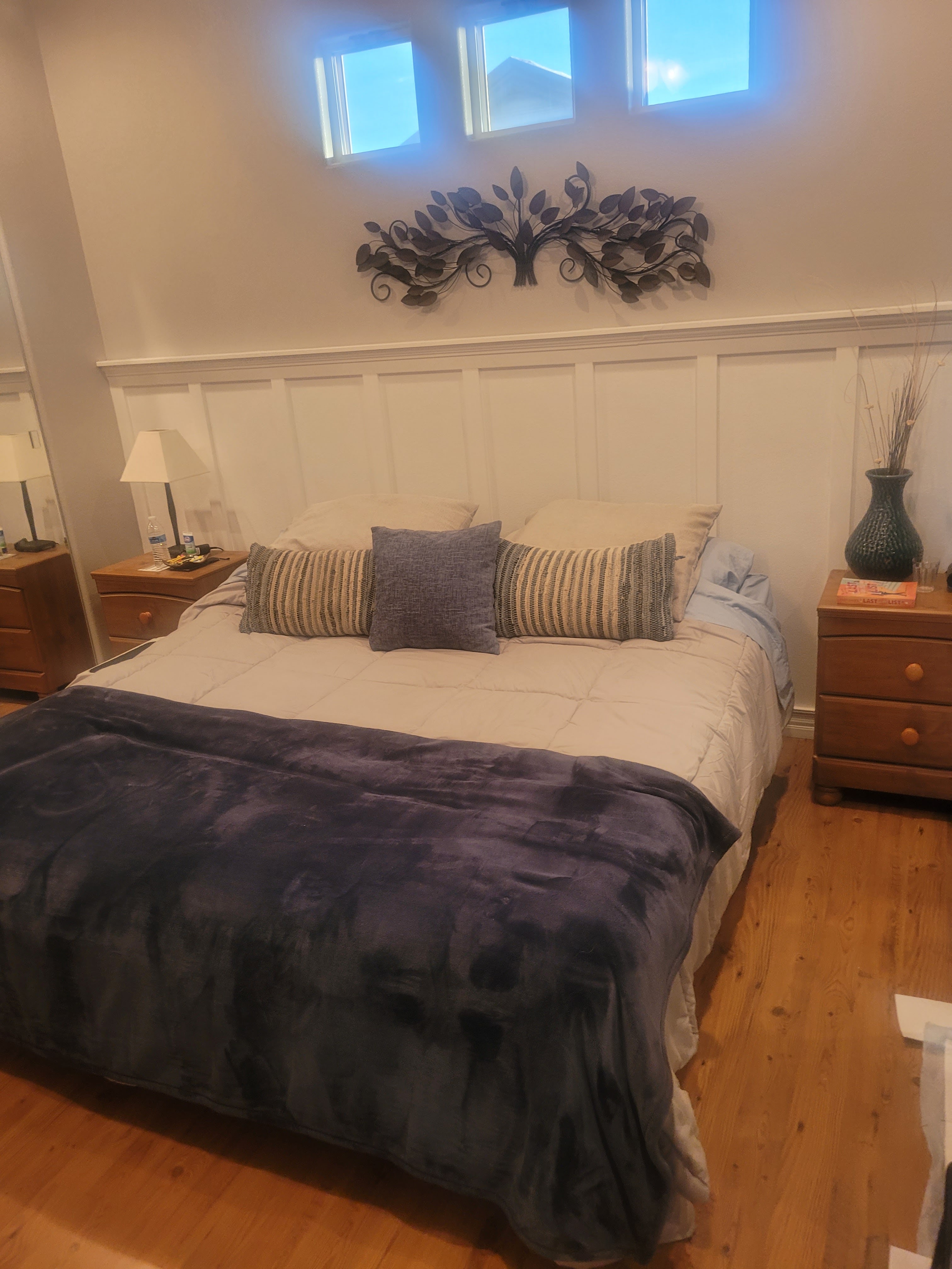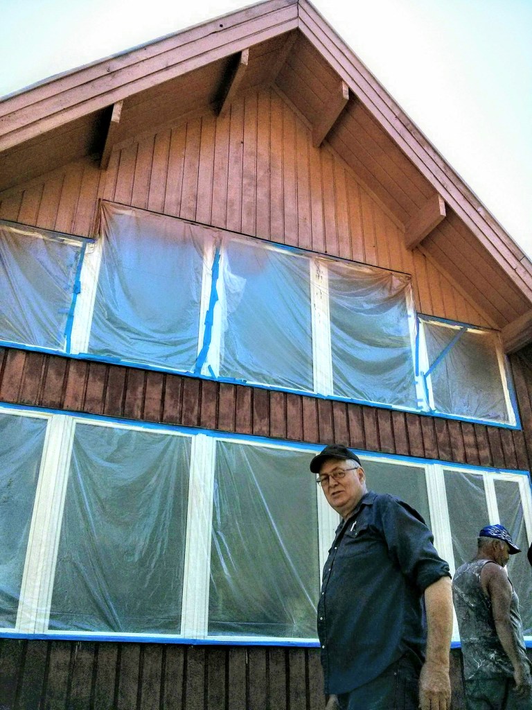 After a Depot run Jackie started to paint the back room our master bedroom. She got about half done today which awesome. The blue grey color with the white trim popping looks great. Why has paint become so expensive.?