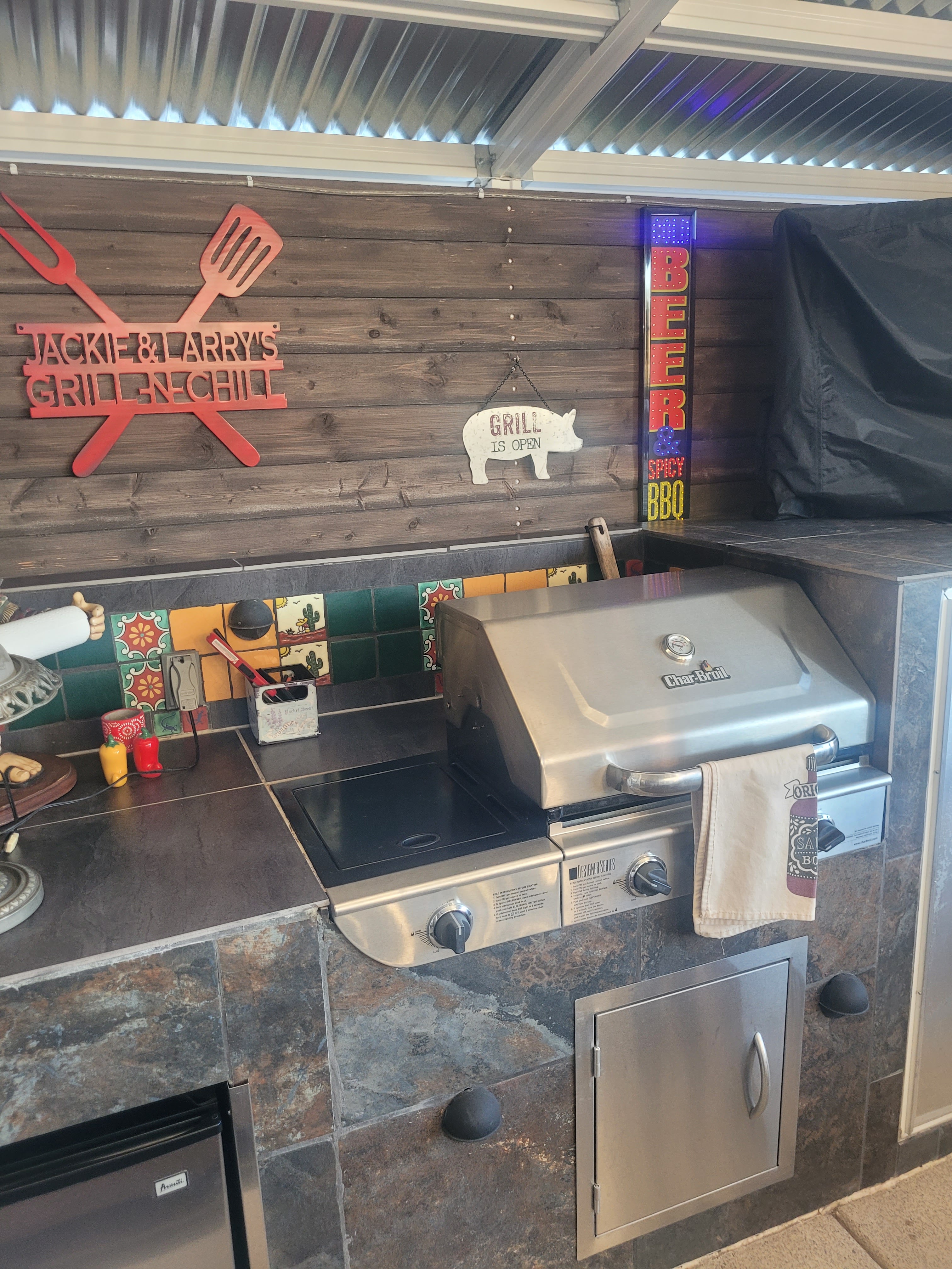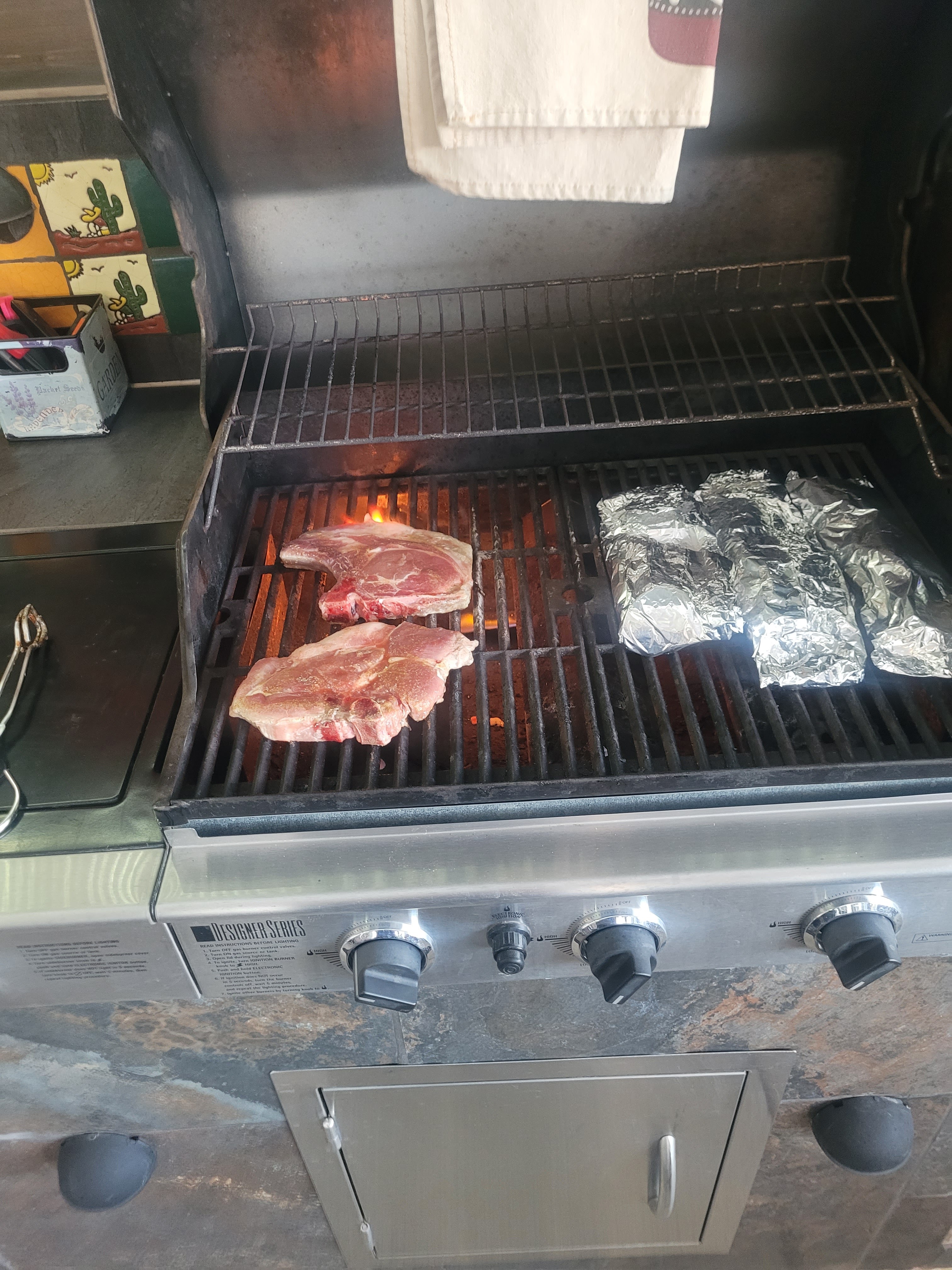 A wonderful supper and BBQ outside on the patio tonight My grill is open sign turned and my cold beer sign shining brightly.