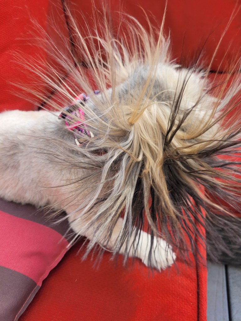 Sat in the back in the warmth and enjoyed it. Daisy joined me but her new haircut was hilarious with the static cling.