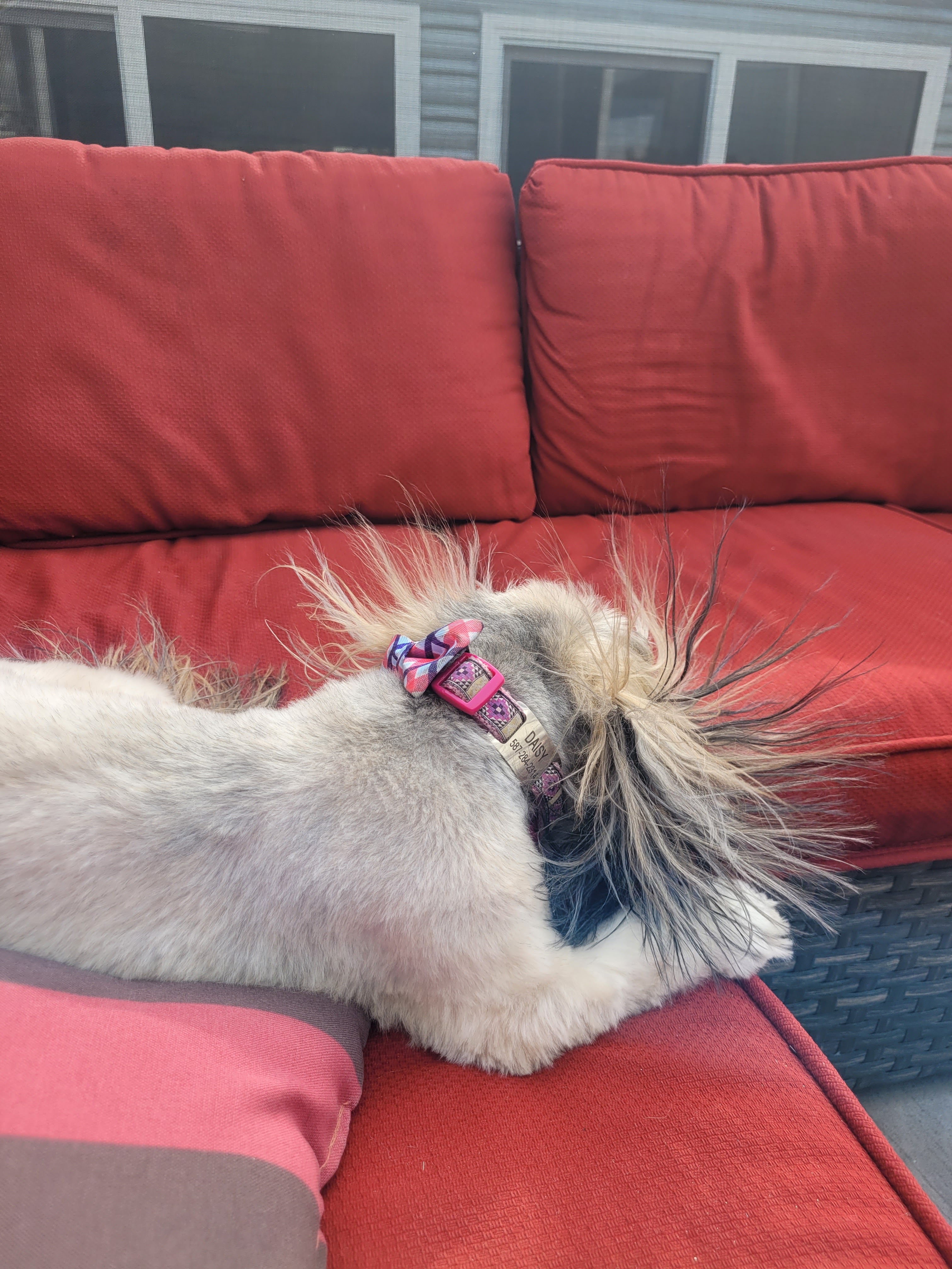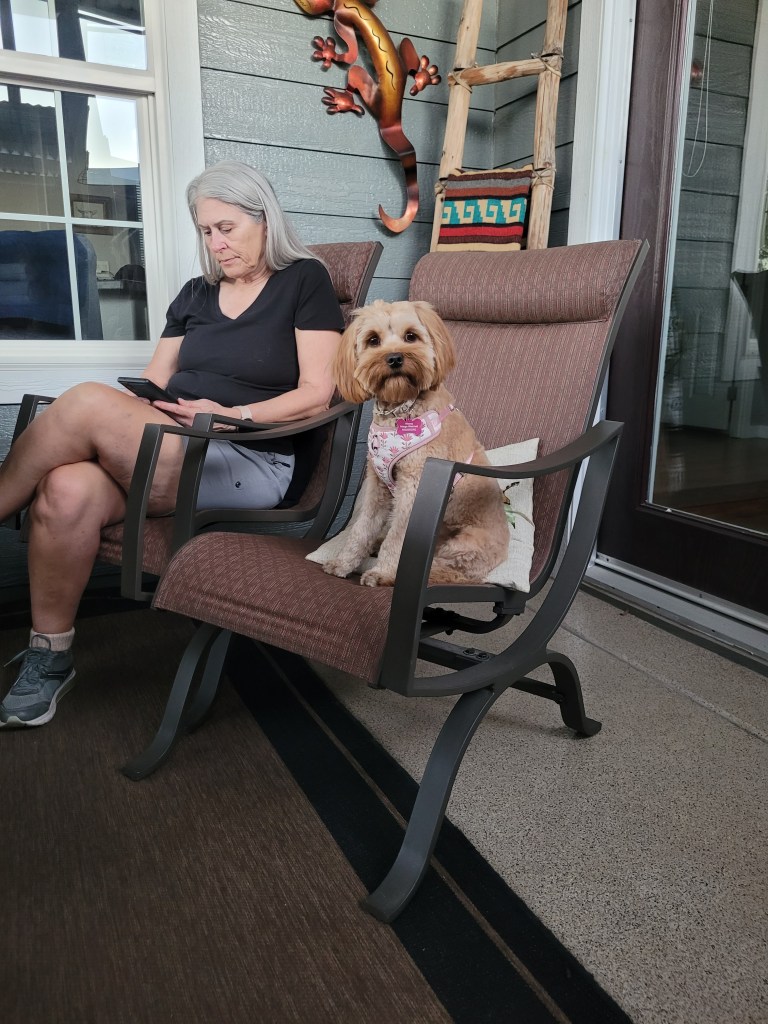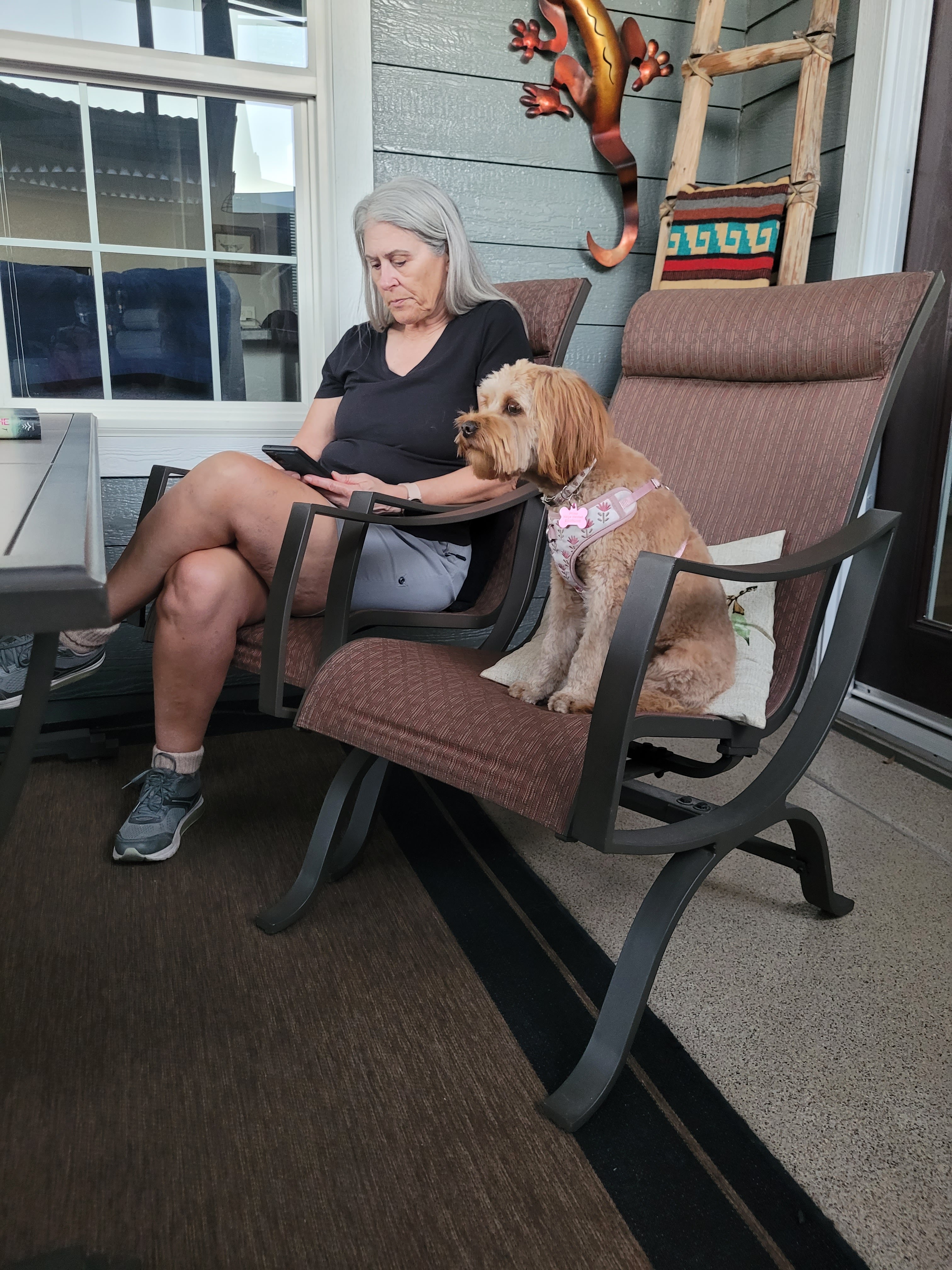 Daisy had fun shopping with us. She spent the day following me with Jackie busy. I worked on the back deck. The original deck I had I thought was too small so I build an addition to it. Building it difficult as it has to be moveable in case of a water line or power line break. So trying to say within the rules a bit I got it done. But when I went to buy the additional composite decking Lowes changed suppliers and I could not find a match. On any given day I would have just bought all new decking. I would say this is 10 yrs ago at least, BUT no I wanted to save money as Trex is expensive and I designed a pattern of old and new boards. 5 yrs later I needed a step and again a supplier change. So three different products which I hate but live with. My add on steps had sunk a bit so I used the jack and lifted it back up and added new blocking. Never mind the different colors but it was not a great job with different widths, thicknesses etc. I live with it as it is in the back but a job not proud of. In todays world it would be about $5k to replace and I am not going to do that. Working in the sun all day is tiring.