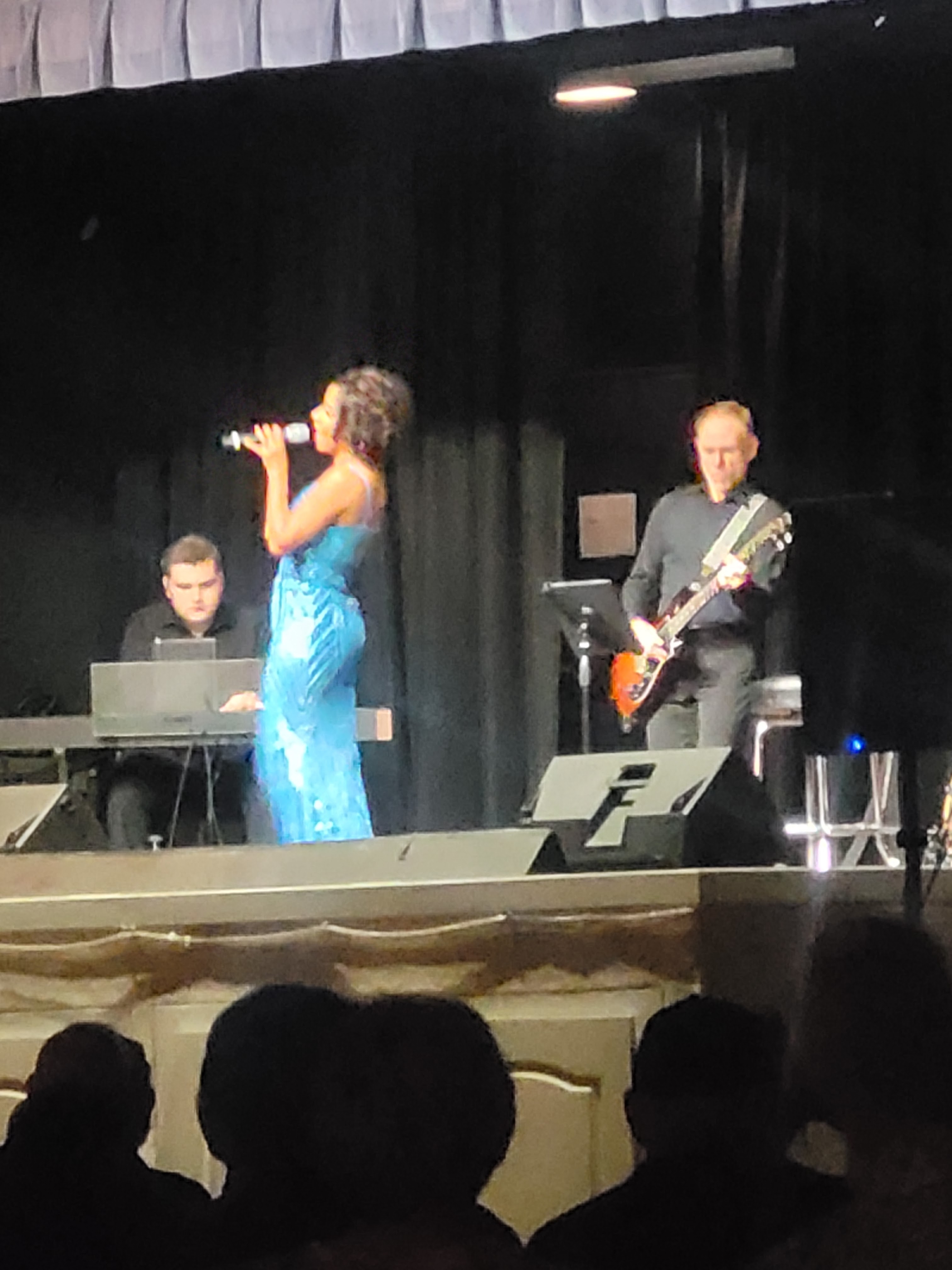 I am not a fan of Whitney type songs as she is like Celine Dion, Barbara Streisand, and Mariah Carey . A lot of yelling and screaming and not hearing one word. This impersonator was a American Idol finalist and I give her performance a 9/10. She put on a very good show that was quite enjoyable.