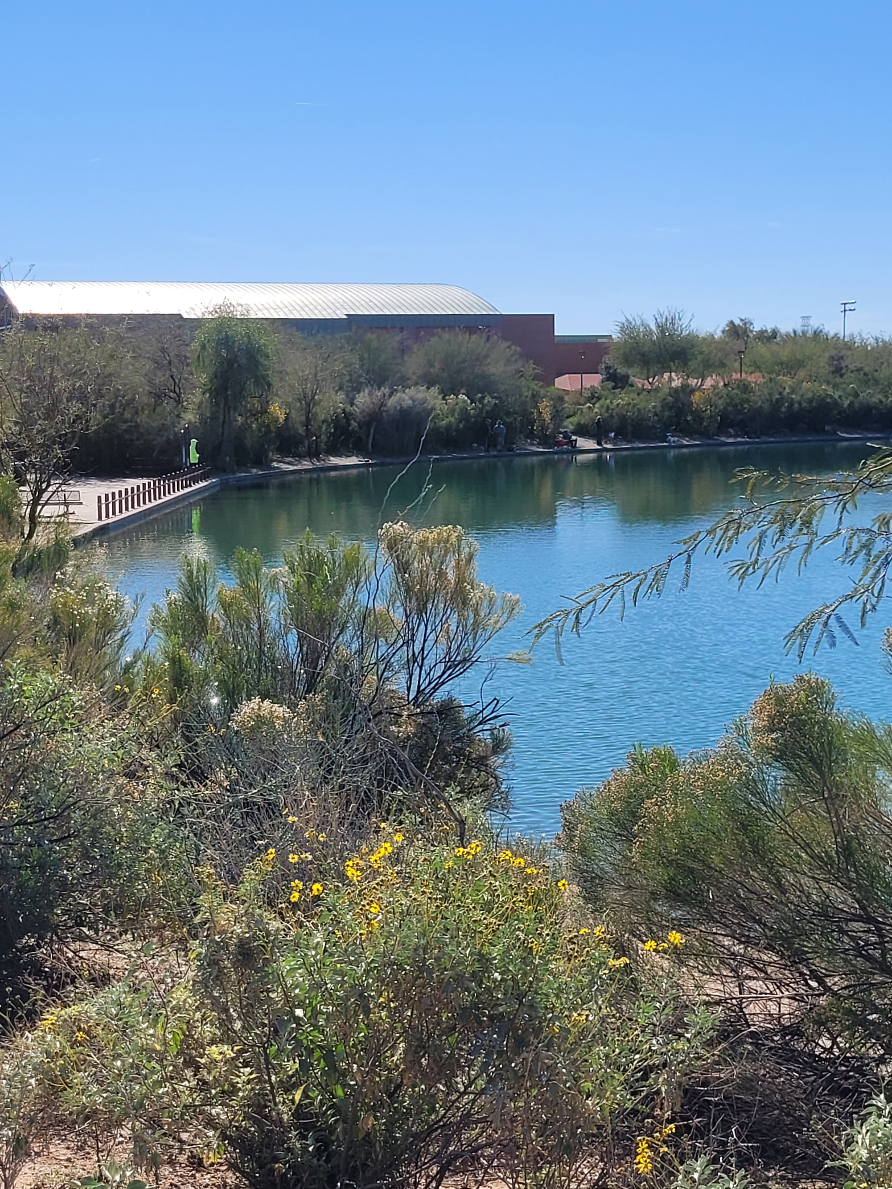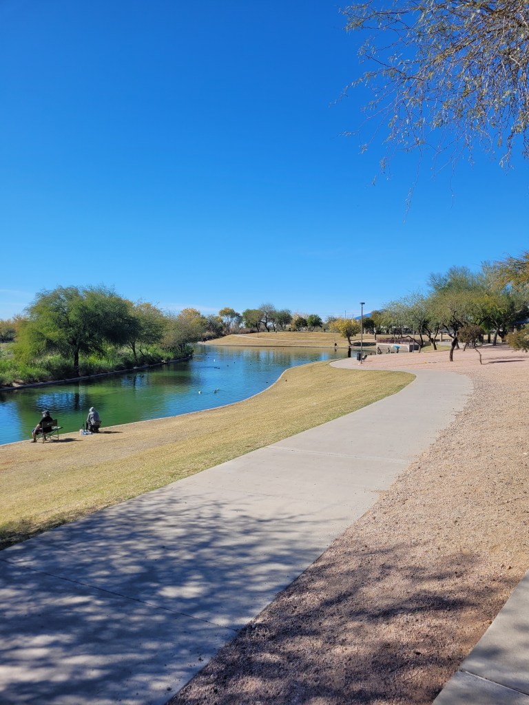 First off to a hike around Red Mountain Lake . A beautiful day for a walk and loads of people fishing today. This park has everything with soccer fields, basketball courts, pickleball courts, tennis courts, picnic tables, lake, paths, and football fields.