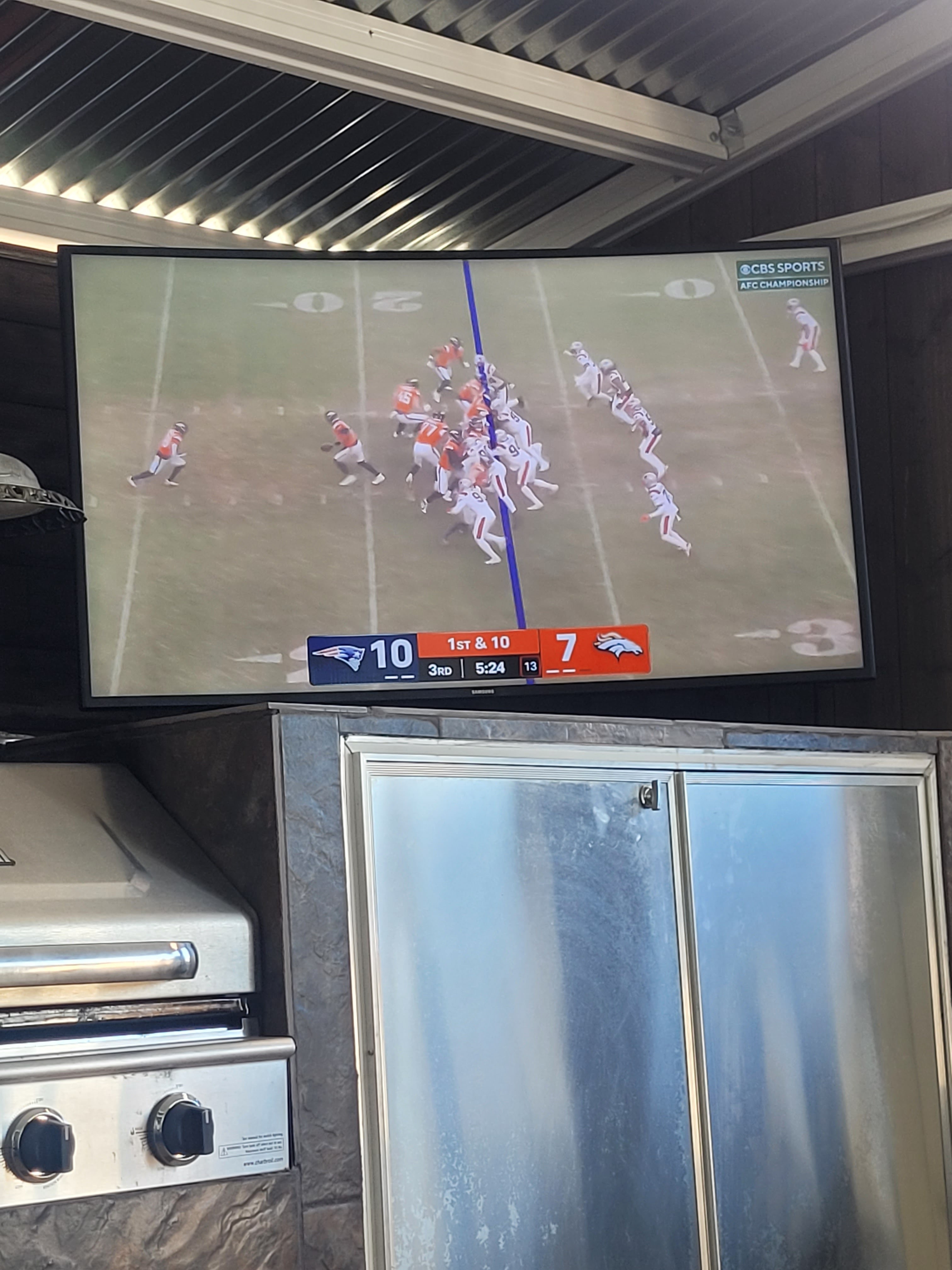 I have to admit. The second game with the Rams we decided to come in rather than put on the patio heater tonight. I do not need supper as the wings were that good.