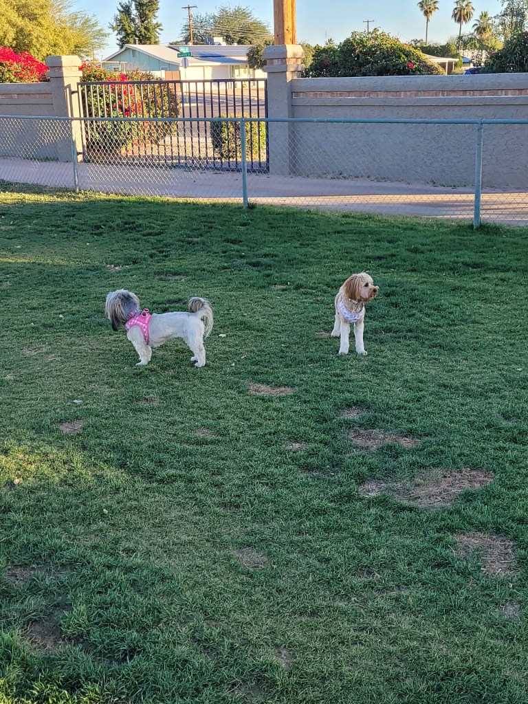 Off to the dog park. Daisy found a Labradoodle to chase her. She had fun and did her business.