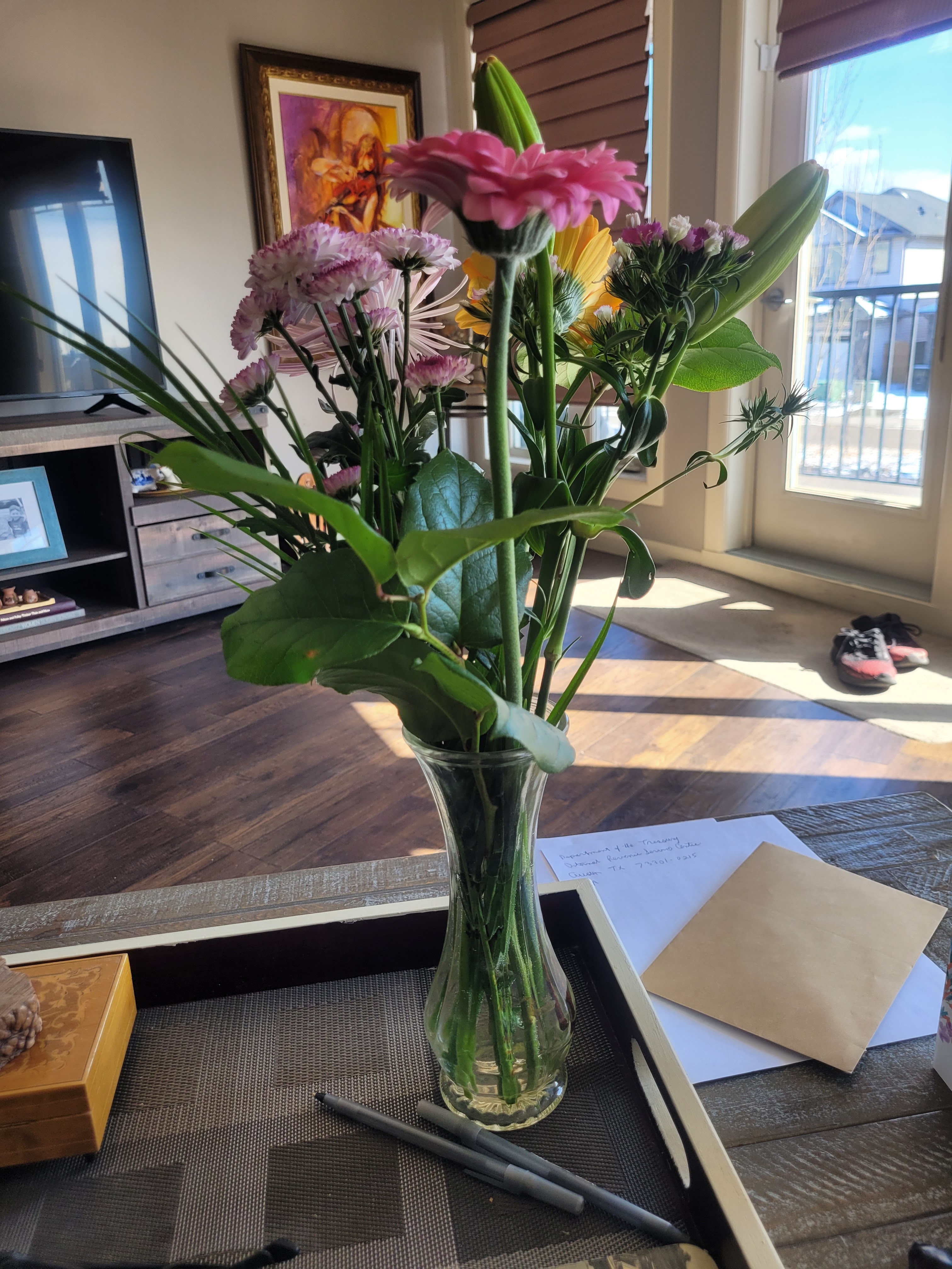 A very nice gesture and gift from Wendy. She gave over for a visit and thoughtfully brought us a bouquet of flowers.