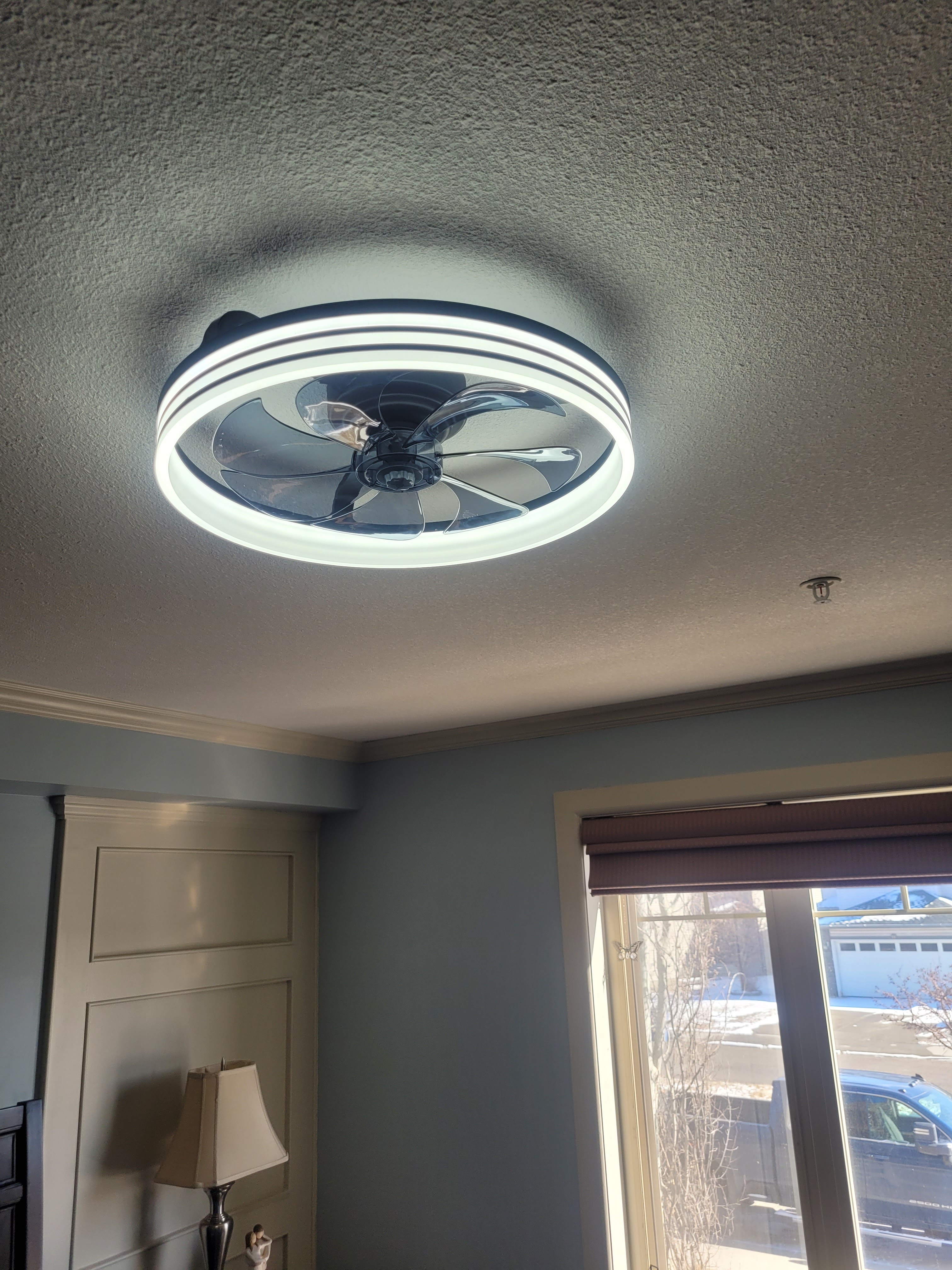 The new fan was awesome. No noise. It is not right above our heads which is good. It doesn’t create a lot of air flow due to its size but is just a gentle quiet whisk. Love it. Daisy loves it.