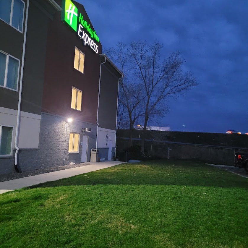 Gas at $4.59 a gallon is a lot higher than normal, then over to Wendy’s for breakfast. They make a great morning biscuit. Next stop Dutch Boys for a London fog. These are in the same lot. Hit the road and 12 hours later landed in Ogden UT. Jackie booked it online and when we arrived we smiled as it was the hotel we had coming when Covid hit. It is 50 yards away from the I15 and if with a pet that is the side they put you on. We decided if we could not get a inner room we would go somewhere else as last time we got up at 3am and hit the highway was we could not sleep. The clerk was exceptional and accommodating and we were set with a pet friendly room on the inside of the building . Only difference was Daisy got her separate Queen size bed instead of sleeping in our King. The toilet in this place was from Honey I shrunk the Kids as it was LOW. I am talking low. Good exercise getting up. You can see the semi trucks in the background and how close they are.