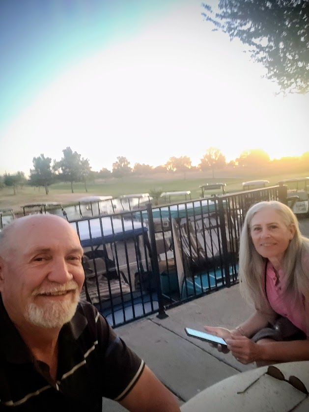 So we pivoted and decided to have a date night ourselves on the deck at Fats. It was over 100 degrees today and at supper time still 80 degrees plus. It was absolutely beautiful over looking the fairway sitting on the deck. Our young waitress was awesome as was the food. 24 ounce cold beer in a huge mug is just cool.