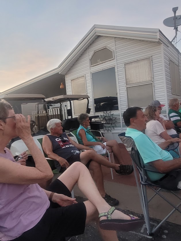 After the chair setup Sandy & Dave came over for a few drinks. We were sitting outside and Jackie said did we want to go inside. We all agreed and the ac air hit us. It was so nice as it was stifling out.